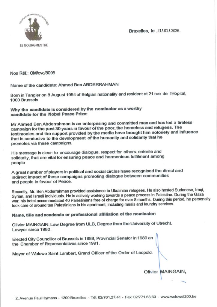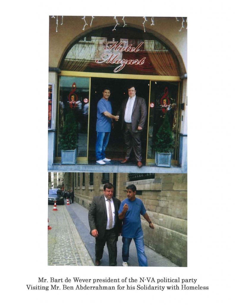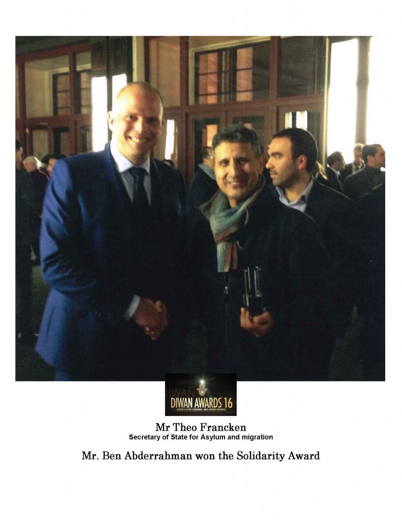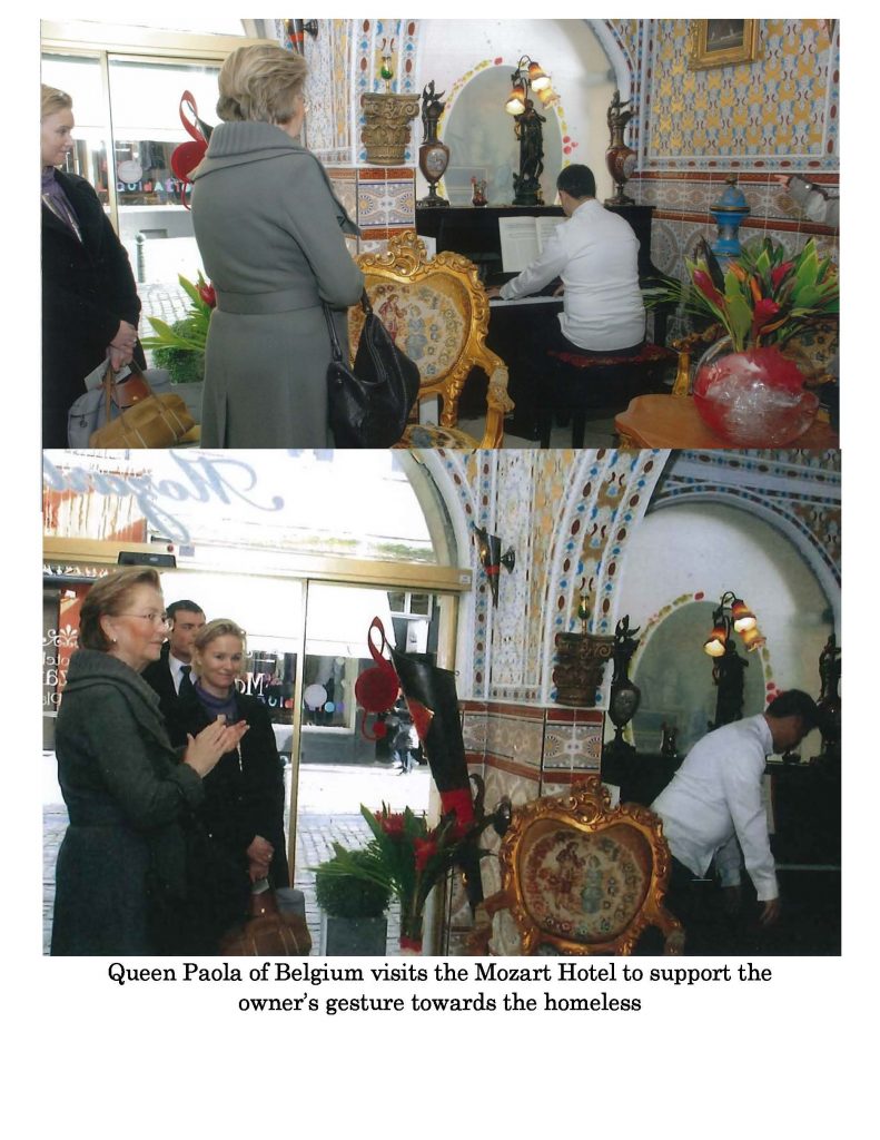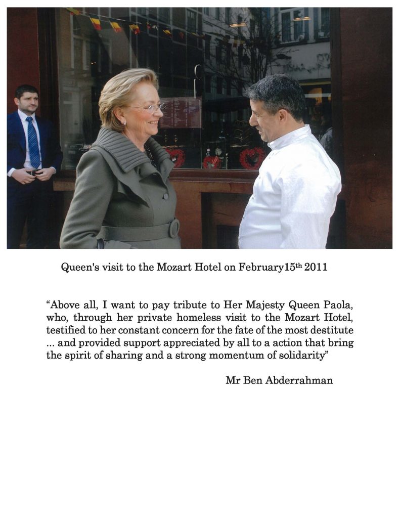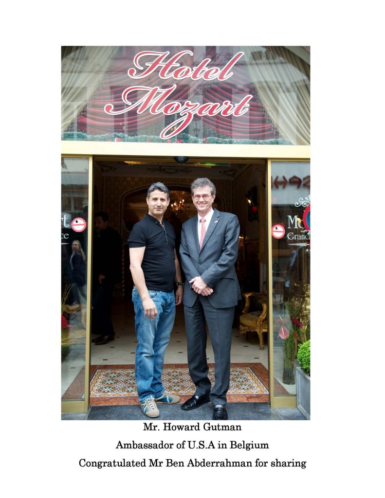 ” Elu Bruxellois de l’année, reconnu dans ses actions humanitaires par plusieurs associations philanthropiques et des institutions publiques, récemment titulaire au DIWAN award de la solidarité, le propriétaire de l’Hôtel Mozart M. Ben Abderrahman ne peut cacher son engagement moral et social”